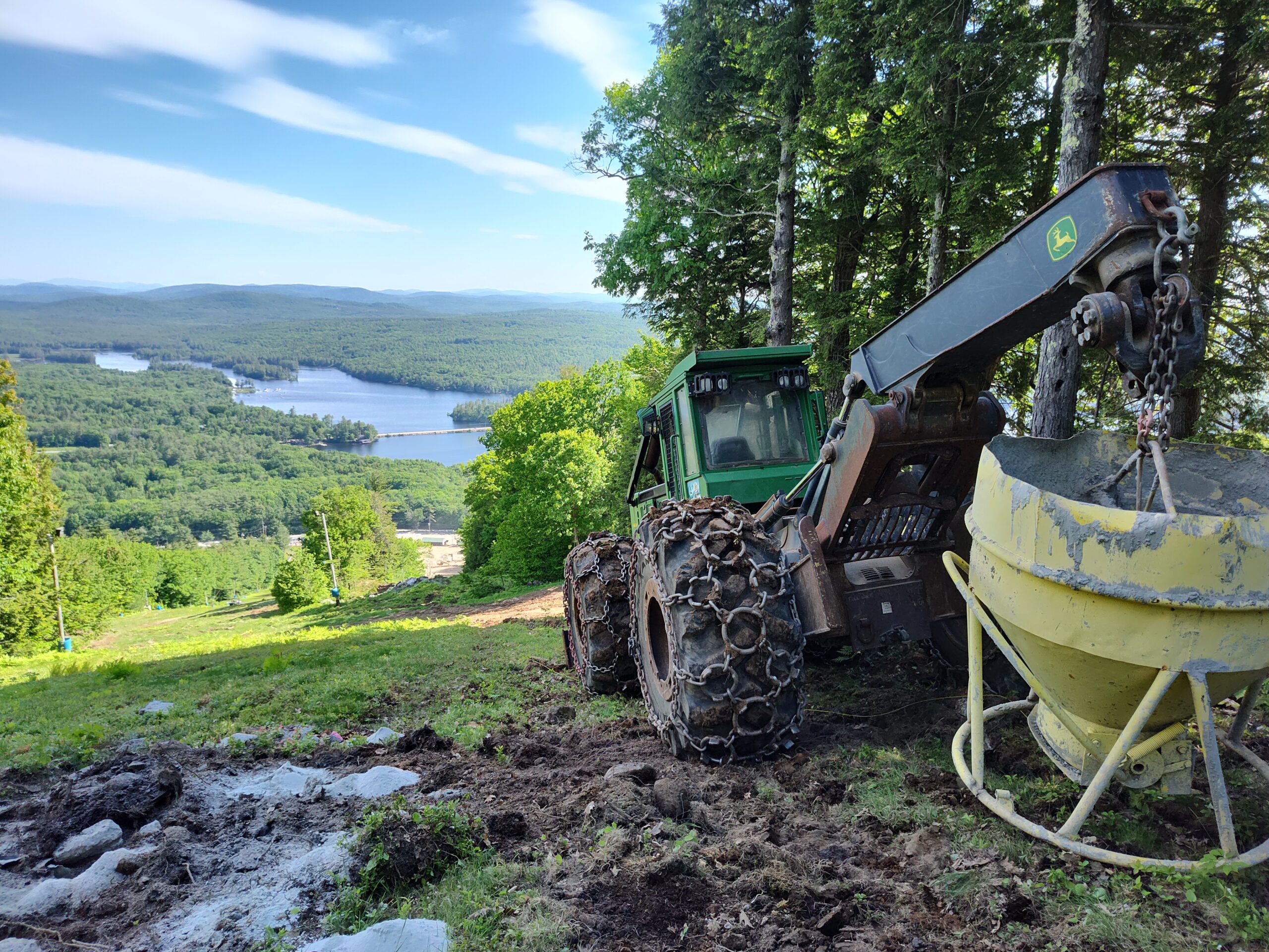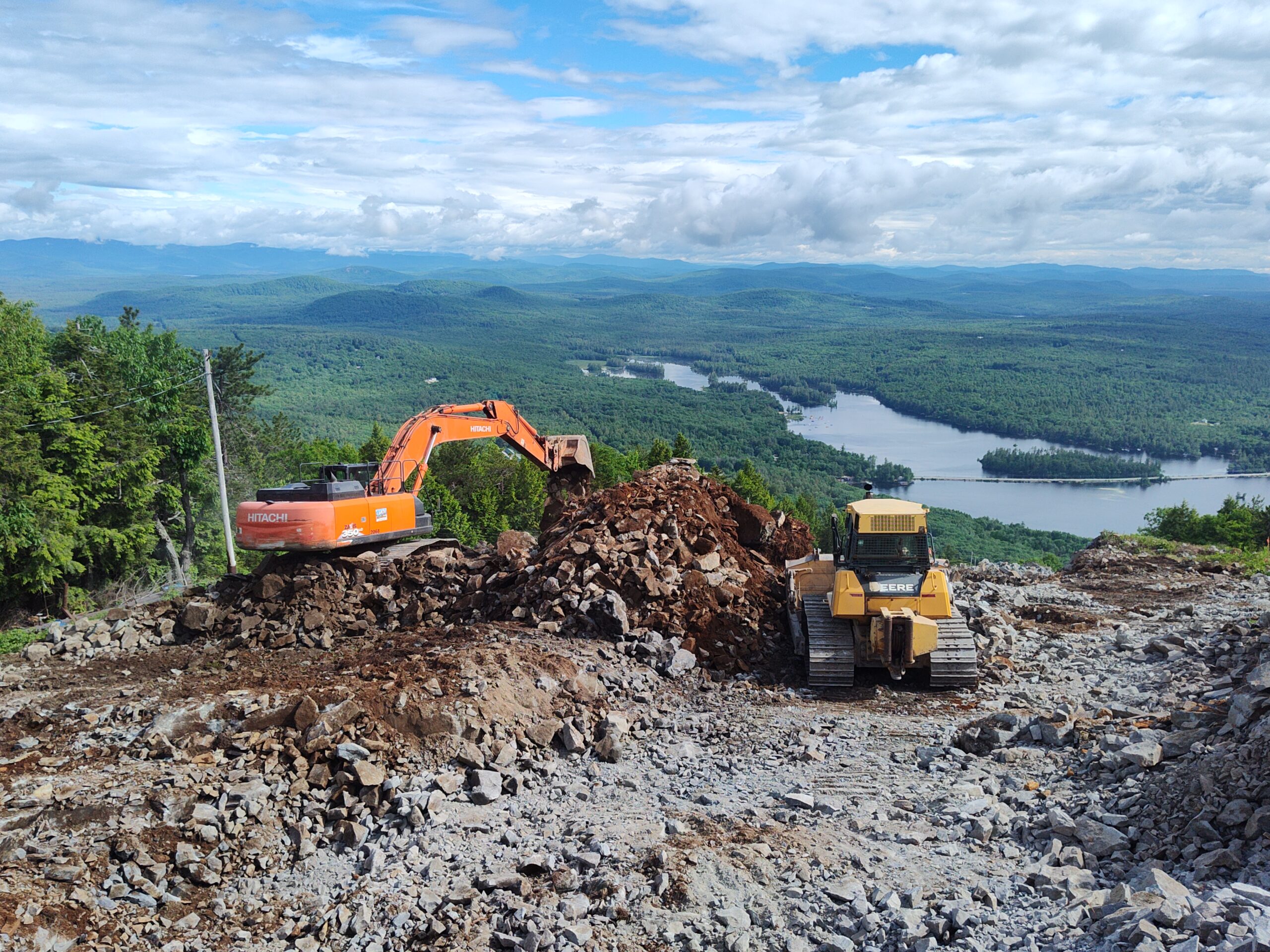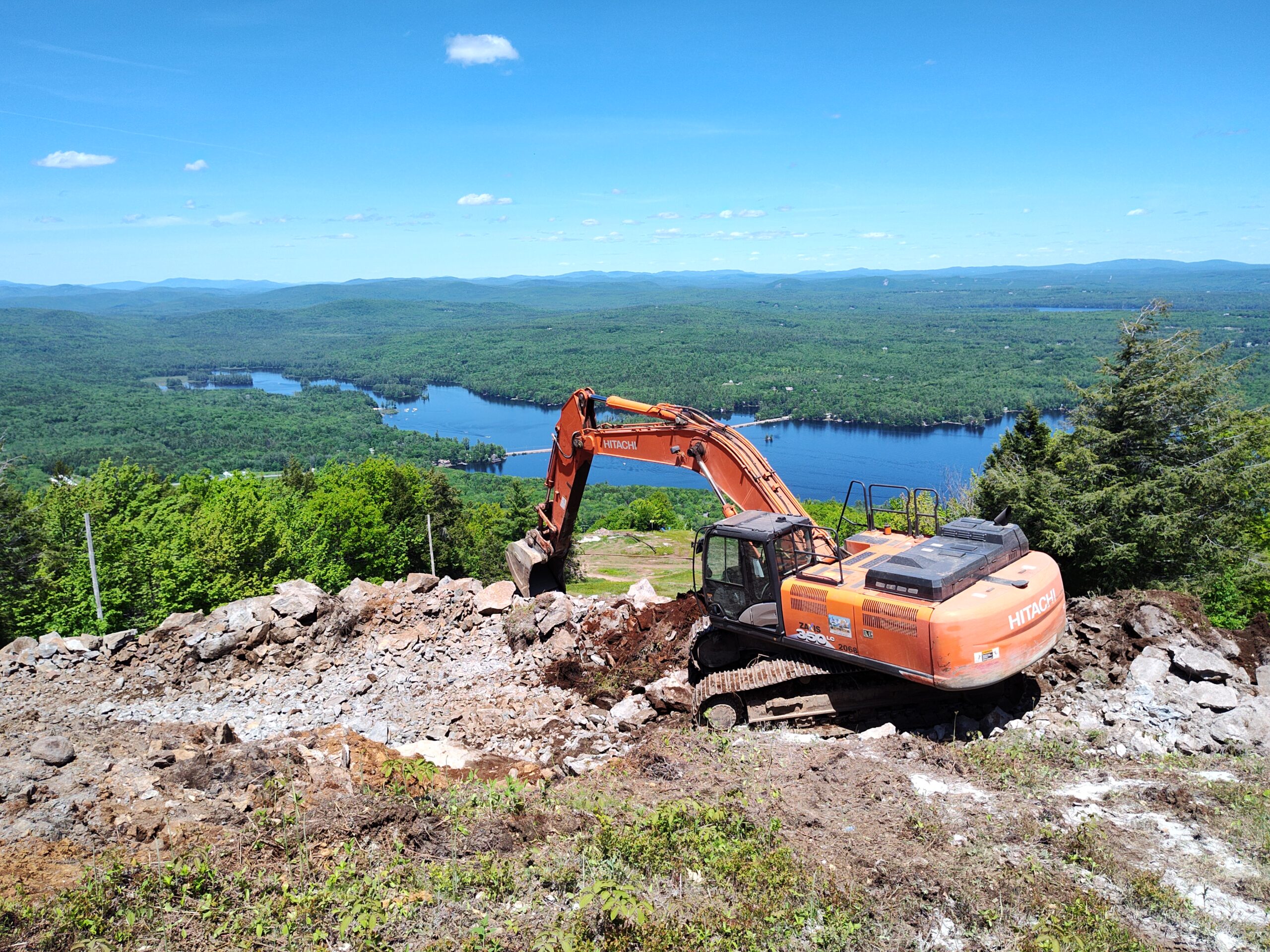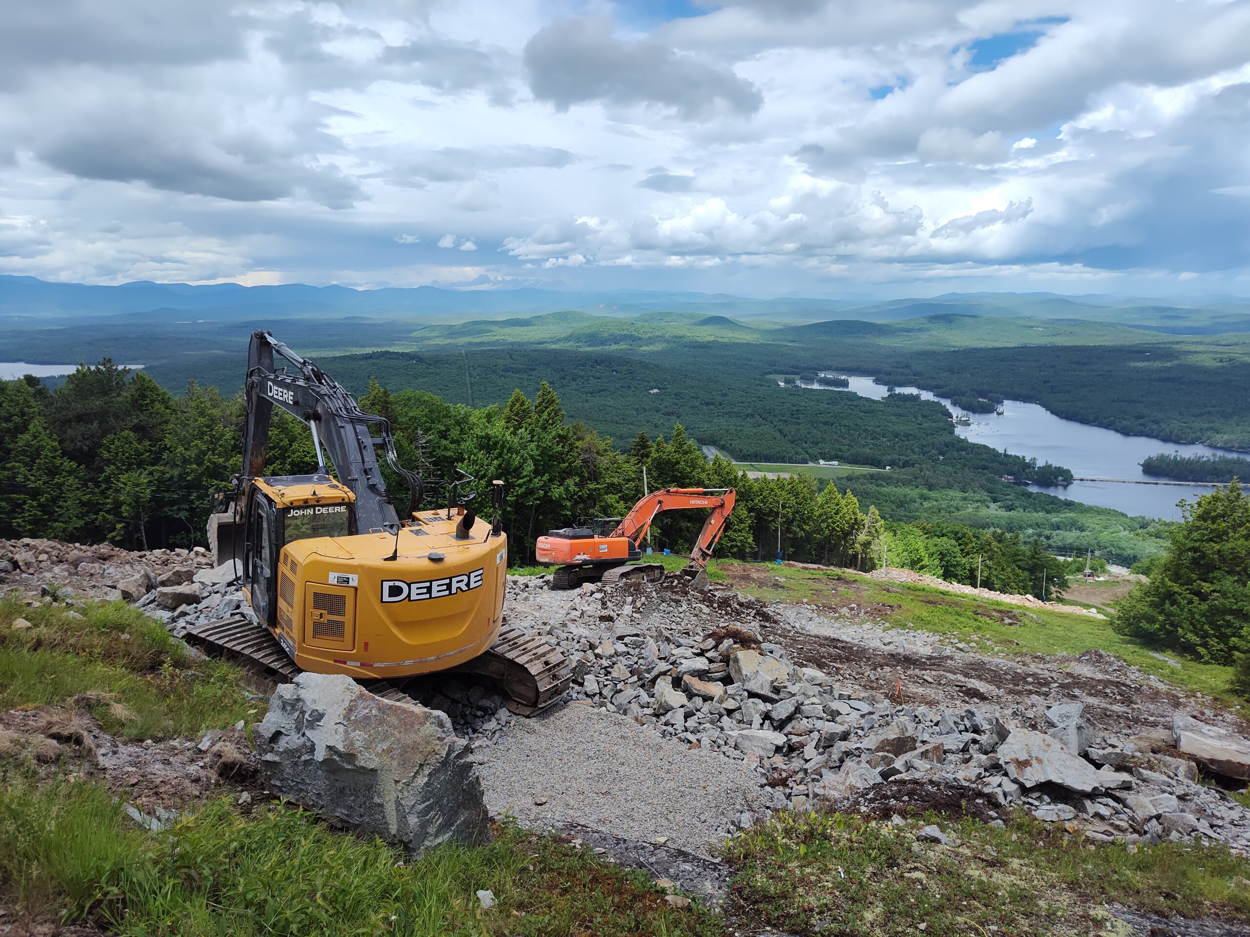 At Pleasant Mountain Ski Area in Bridgton, ME, Fall Line Construction provided excavation, grading, and snowmaking infrastructure improvements to support trail upgrades and lift expansion. The project required trenching for HDPE snowmaking pipe, drilling and blasting ledge, and stabilizing steep slopes to create safe and durable foundations. Our team coordinated heavy excavation, pipe handling, and concrete foundation support — including aerial placement of components and concrete by helicopter — to deliver the work safely and on schedule.